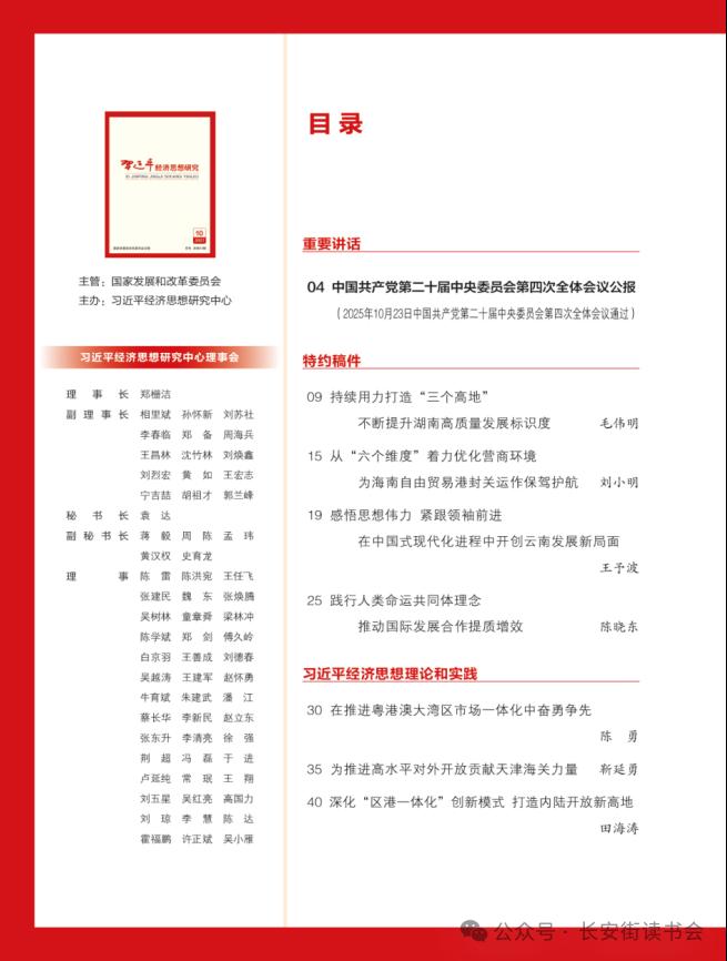 王予波在《习近平经济思想研究》2025年第10期撰文《感悟思想伟力 紧跟领袖前进 在中国式现代化进程中开创云南发展新局面》指出,党的二十届四中全会,是在向第二个百年奋斗目标进军的新征程上举行的一次十分重要的会议,是乘势而上、接续推进中国式现代化建设的又一次总动员、总部署。我们将把深入学习贯彻党的二十届四中全会精神,同学习贯彻党的二十大和二十届历次全会精神结合起来,同深化落实习近平总书记考察云南重要讲话精神结合起来,坚持党的全面领导、坚持人民至上、坚持高质量发展、坚持全面深化改革、坚持有效市场和有为政府相结合、坚持统筹发展和安全,推动“十四五”规划顺利收官,科学谋划“十五五”发展,以实干实绩坚定拥护“两个确立”、坚决做到“两个维护”。