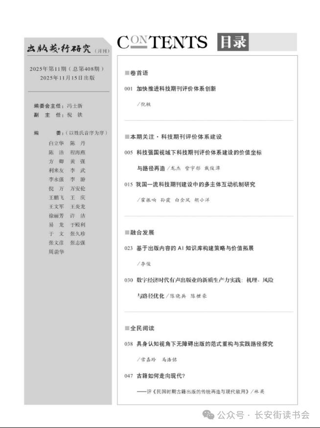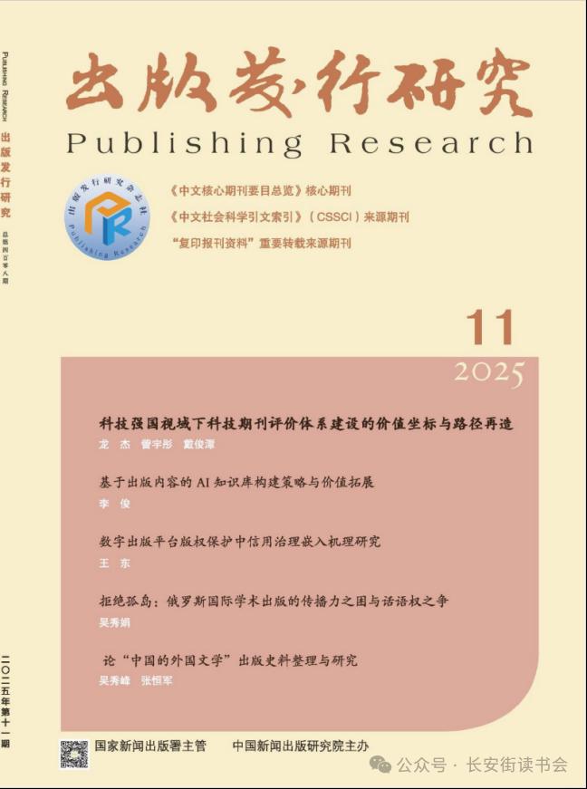 龙杰、訾宇彤、戴俊潭在《出版发行研究》2025年第11期撰文《科技强国视域下科技期刊评价体系建设的价值坐标与路径再造》指出,科技期刊评价体系是国家科技治理的重要导向工具。然而其治理功能却面临着发挥不畅的困境,加剧了我国科技论文发表“两头在外”的问题。造成该困境的根本原因是科技期刊评价体系缺乏中国特色社会主义科技价值观的宏观指引。科技强国是中国特色社会主义科技价值观的集中体现与理论结晶,其核心内容为科技期刊评价体系构建了“政治—学术—实践”的三维价值坐标系。即科技期刊评价体系建设应以政治价值铸魂,构建特色指标贯彻中国科技观念;以学术价值为本,扶持科学精神与长周期基础研究;以实践价值作翼,强化指标设计与重大现实问题的关联,促进科技成果转化并形成生产力,造福民生。依循该导向进行路径再造,科技期刊评价体系能够靶向解决现存现实问题,复归治理本位,推动科技向善,增进人类福祉,进而成为全球科技治理中国方案的代表性成果,向世界讲好新时代中国科技故事。