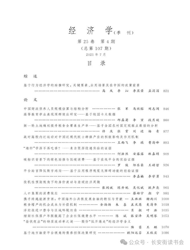 高彧、李沁、李显荣、孟涓涓在《经济学(季刊)》2025年第4期撰文《基于行为经济学的助推研究:关键要素、应用场景及在中国的政策前景》指出,行为经济学与经济政策及商业实践相融合,通过行为助推优化个体决策,已成为全球政策制定的前沿。本文系统梳理助推的概念、理论基础、主要方式、技术路线和福利效应,提出基于决策情境与行为偏误的助推设计框架,并据此对储蓄、劳动供给、健康、能源与环境、慈善与公益、社交媒体使用等场景的助推实践进行评述。本文进一步探讨了助推在我国政策落地中的重要场景、制度特征、文化特点以及数字化赋能的独特优势。
