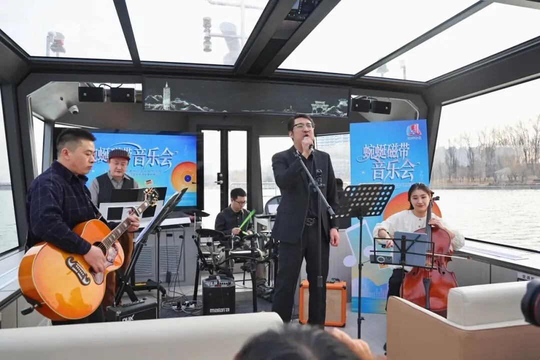 日前,一场沉浸式新体验的“蜿蜒磁带音乐会”在运河游船上演。经典旋律与运河两岸的古今风光巧妙编织,为市民游客带来一段精彩的水上音乐漫游之旅。