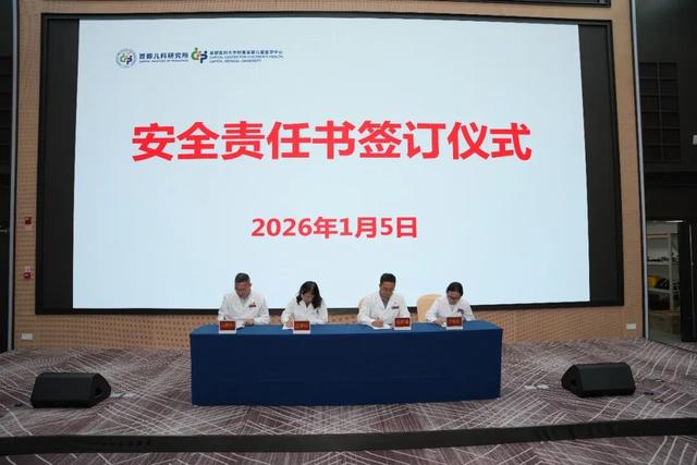 为深入贯彻落实市卫健委、市医管中心关于安全生产和消防安全“一岗双责”“三管三必须”的工作要求,进一步压实安全管理责任,完善全员安全生产责任制,2026年1月5日下午,首都儿科研究所举行2026年度安全责任书签订仪式。以责任“签字”推动安全“落实”,凝聚起“全员参与、人人有责、齐抓共管”的安全工作合力。