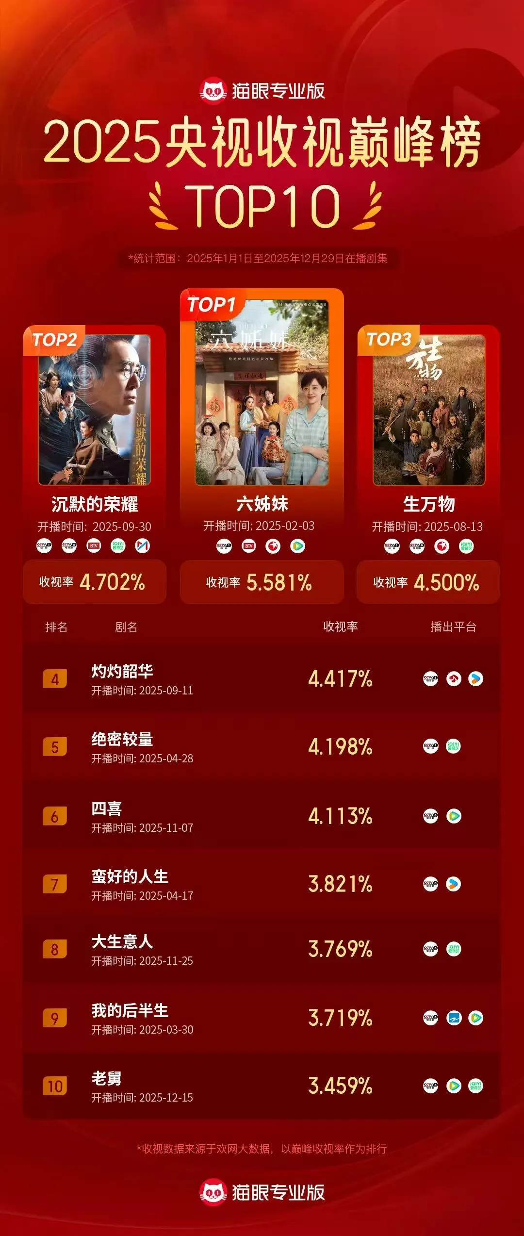 北京市广电局“北京大视听”重点文艺项目·电视剧《六姊妹》于2025年2月3日在CCTV-1播出,以何家六姊妹的人生轨迹为主线,细腻刻画了中国普通家庭在社会变迁中的坚韧、温情与成长,展现了一幅真实动人的生活画卷。