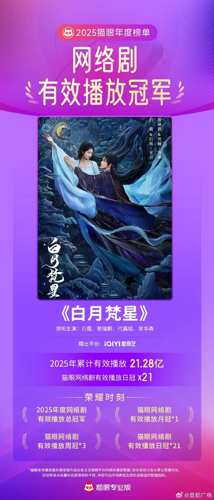 北京市广电局“北京大视听”重点文艺项目·网络剧《白月梵星》于2025年1月7日在爱奇艺平台播出,讲述了凡人少女白烁在寻仙报恩途中,意外结识妖族大神梵樾,由此结伴而行,一路携手除妖降魔,拯救天下苍生的故事。