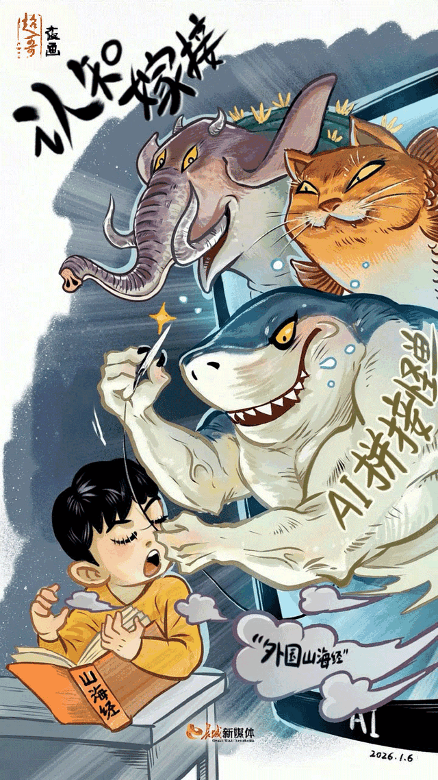 “AI拼接怪兽”看似是技术带来的新奇产物,实则正在悄然侵蚀未成年人的认知根基。当“外国山海经”抢占孩子的视野,不仅扭曲其对自然与中华传统文化的理解,更可能引发身份认同的偏差。它们缝上的不仅是孩子的眼睛,更是他们看见自己文化源头的权利、感受真实世界之美的能力。而这些猎奇内容由算法源源不断的推送,更是构成了一张侵蚀童年精神的网。