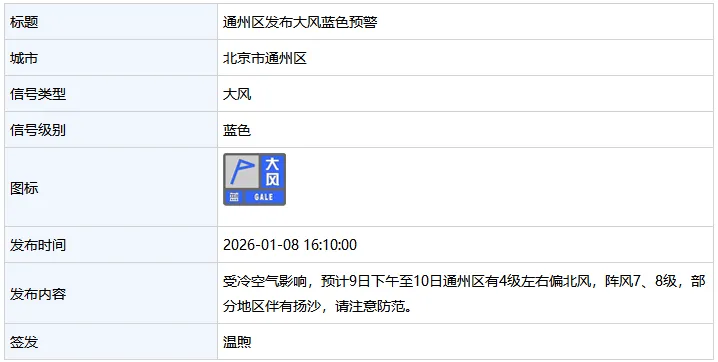 通州区气象台发布