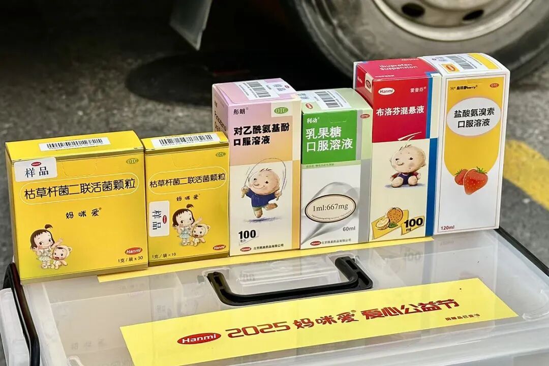 打开“妈咪爱爱心药箱”,里面整齐码放着几十盒妈咪爱®枯草杆菌二联活菌颗粒、爱普芬®布洛芬混悬液等5种儿童常用药品,它们将被送到有需要的儿童手中。北京韩美药品第八届爱心公益节活动中,公司向公益组织捐赠350个爱心药箱,以实际行动护航儿童健康。