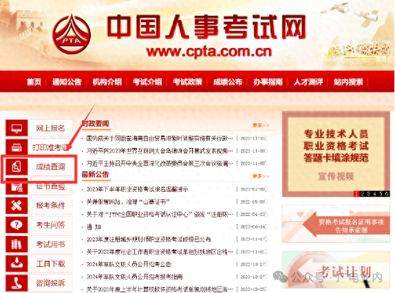 请考生到网站中国人事考试网http://www.cpta.com.cn“成绩查询”栏目进行查询。