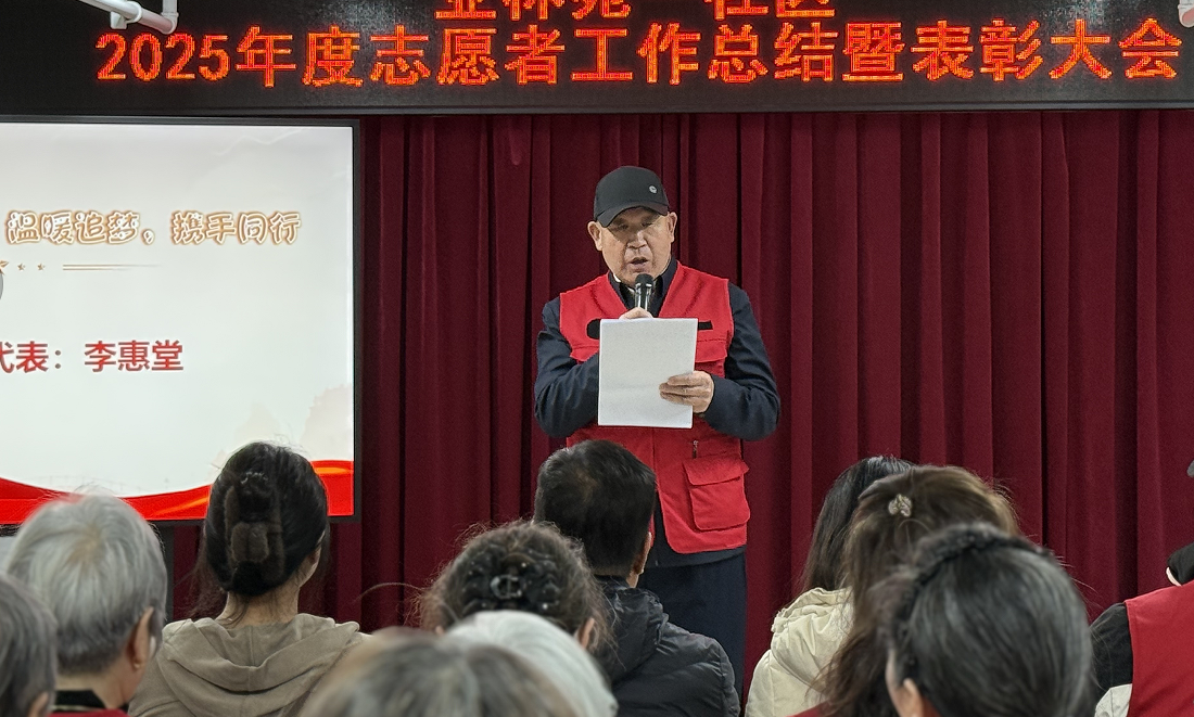 社区党总支书记段红军:此次表彰大会不仅增强了志愿者的荣誉感与归属感,更以党建为纽带凝聚起推动亚林苑一社区“志愿红”新篇章的强大合力,让志愿精神在社区持续传递、发光发热。