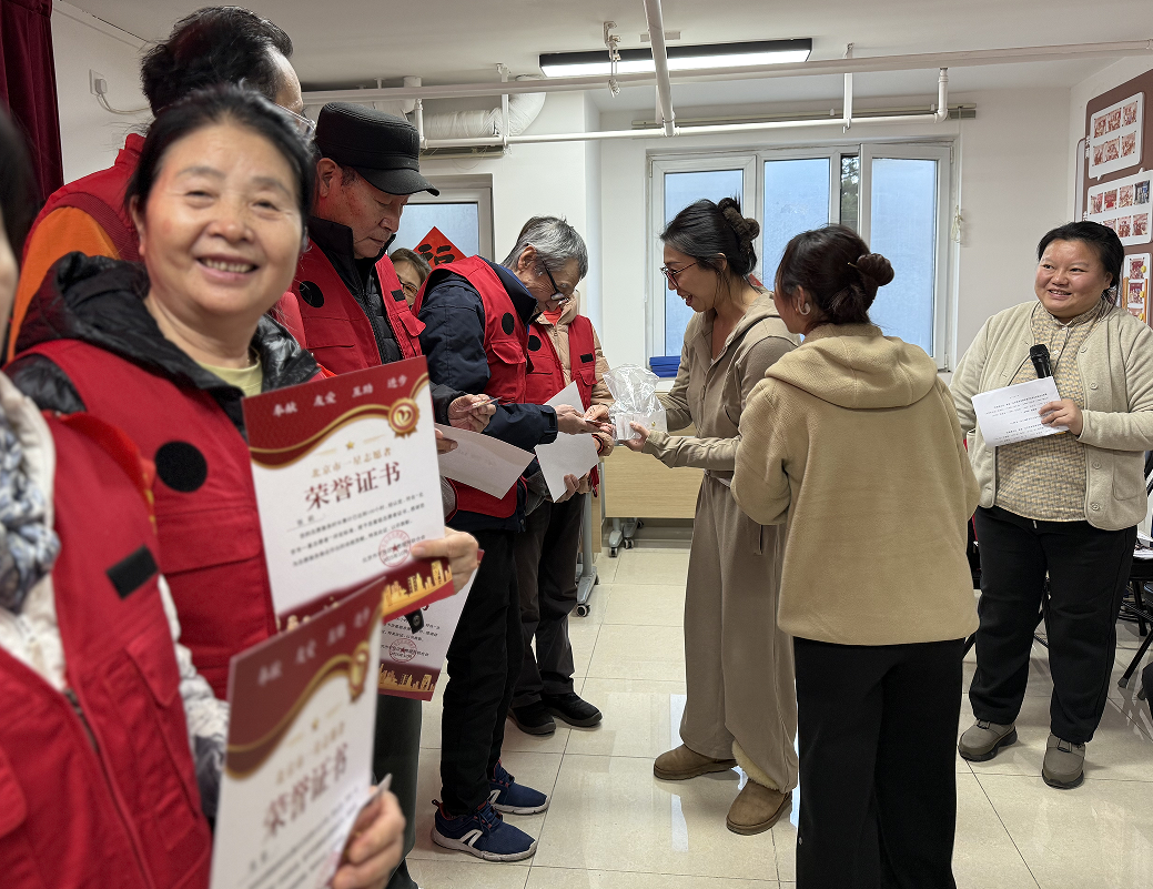 在表彰颁奖环节,社区领导按照一星至五星的梯度,为不同服务层级的志愿者依次颁发荣誉证书。每一次颁奖都赢得现场热烈掌声,是对志愿者们辛勤付出的充分肯定。右安门街道平安建设办公室综治办主任张立群参加大会,并高度认可亚一社区党建引领志愿服务的工作成效。