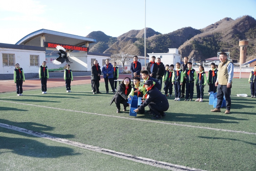 北京市野生动物救护中心是黄松峪中心小学的首批科普实验基地。现场,社团学生在救护中心工作人员的帮助下,完成了野生鸟类科学放生活动。看着一只只斑鸠和喜鹊飞向蓝天,学生们心潮澎湃。学生符铭泽说:“原来我们身边有这么多美丽的生命,等待我们去发现和守护。”救护中心宣传科史洋老师为学生们带来了“观鸟的意义”科普讲座,以生动语言和丰富案例,将孩子们引入自然观察的殿堂。