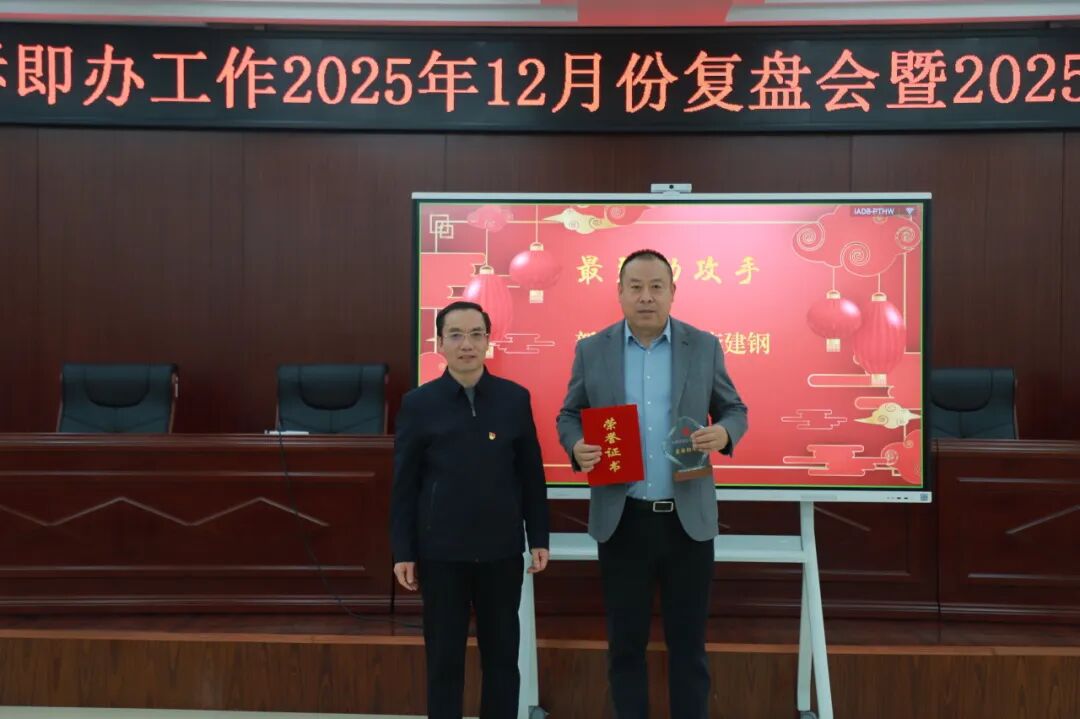1月7日,太阳宫地区召开“接诉即办”工作2025年12月份复盘会暨2025年度表彰会,通报12月办件情况,复盘分析扣分案件,探索案件办理策略,精准施策提升办件质效,同时,对2025年全年优秀单位和个人进行表彰,并对下一步工作进行指导。地区领导班子成员,七室一委副主任,综合行政执法队常务副队长,一站四中心主任,市场所所长,乡联社、各村经济合作社社长,各社区书记,新纪物业、新纪开发、绿化公司负责人参加会议。办事处主任赵建峰主持会议。