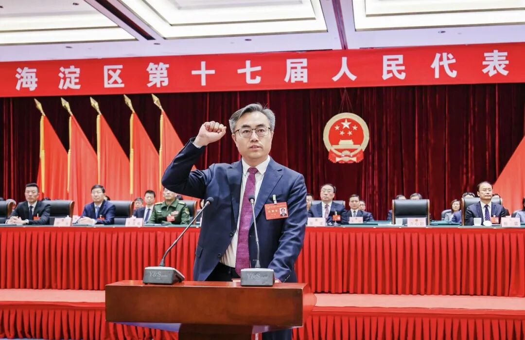 张革代表中共海淀区委向大会的圆满成功和新当选的同志表示热烈祝贺,他指出,“十四五”时期,全区上下砥砺奋进,各项事业取得了历史性成就,为“十五五”开好局、起好步奠定了坚实基础。区人大及其常委会坚持党的领导、人民当家作主、依法治国有机统一,聚焦发展所需、民生所盼,充分发挥制度优势和代表资源优势,为海淀高质量发展贡献了人大智慧和力量。各位人大代表充分发挥模范表率、监督推动和桥梁纽带作用,在各领域贡献力量、积极履职,展现出服务大局、履职为民的担当风采。