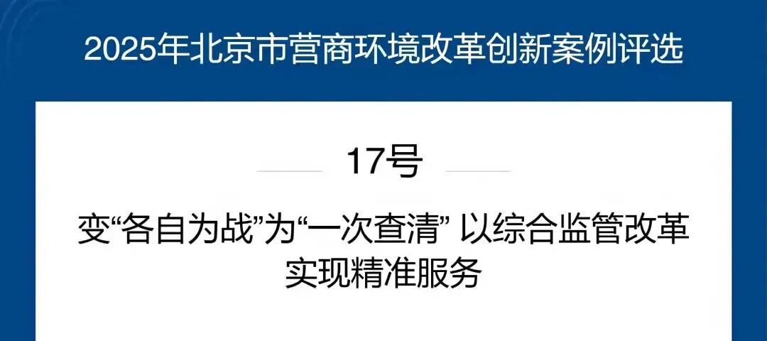 市级17号案例简介:变“各自为战”为“一次查清”以综合监管改革实现精准服务(市市场监管局、顺义区市场监管局)。2025年顺义区聚焦企业核心诉求,以“综合查一次”为突破口,启动监管模式系统性改革。此项改革旨在通过机制创新与流程再造,变分散的“监管干扰”为集约的“服务赋能”,推动实现政府监管提效与企业负担减轻的双赢,全力打造更具竞争力的营商环境。