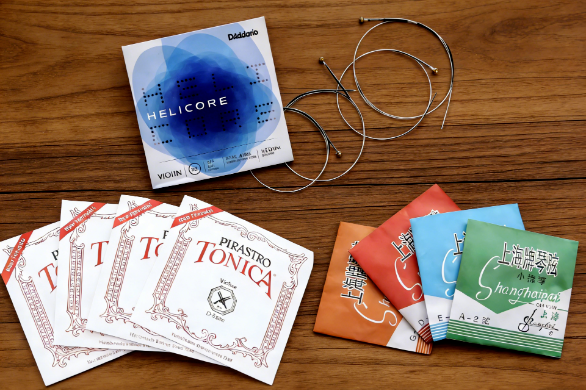 琴弦是消耗品,首先要考量预算。一套琴弦并非用到断裂才需更换,均有最佳使用周期:若每日练习1小时,建议半年内更换一次;练习时间越长,更换频率越高,如果演奏者易出手汗、频繁断弦,更换还需更勤。职业演奏家一般三个月更换一套。学生日常也需多留意琴弦状态,出现脱丝、音质明显变差,就要及时换弦。因此初学者优先选择价格合适、耐用的琴弦即可,几乎所有琴弦品牌都有专为初学者设计的耐用款,比如D’addario旗下的Helicore、Pirasto旗下的Tonica,以及国产上海牌琴弦等,均可作为日常练琴用弦。