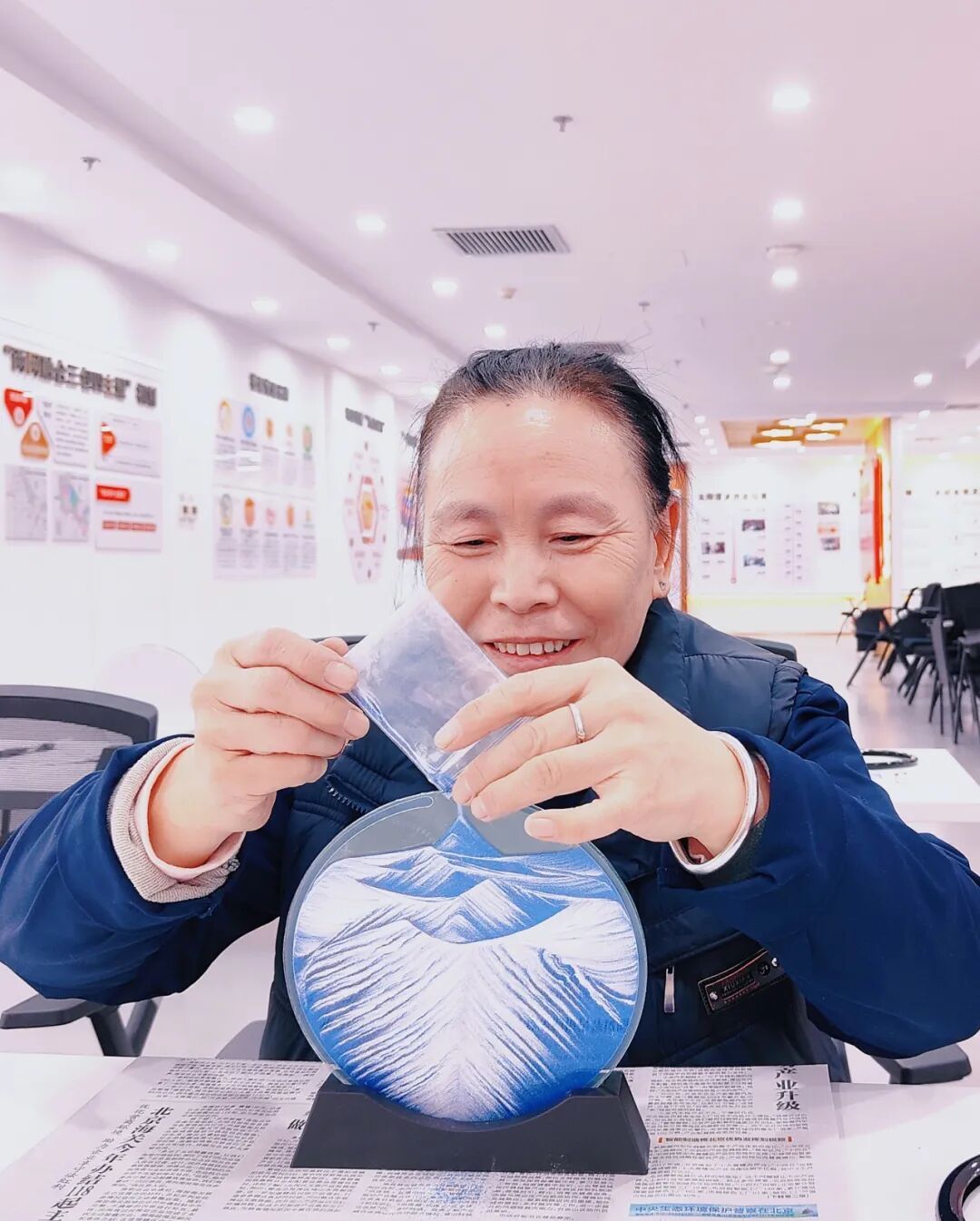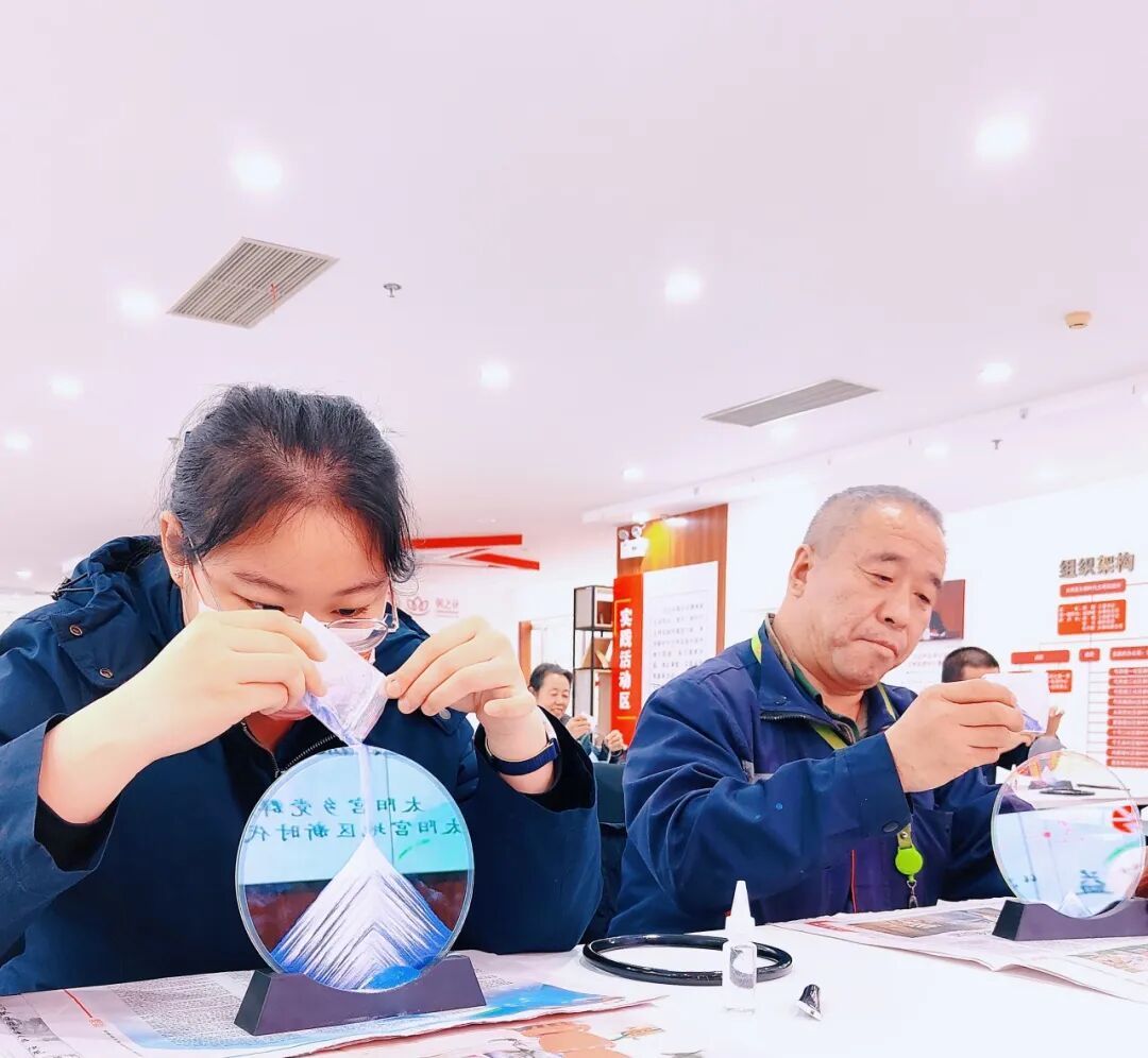 动手环节中,职工们专注调配彩沙、勾勒层峦,让流动的沙粒在瓶中定格成独特的风景。活动既让大家体验了传统手工艺的静心之美,也在协同创作中增进了团队情感,成为冬日里一份温暖而有趣的文化记忆。