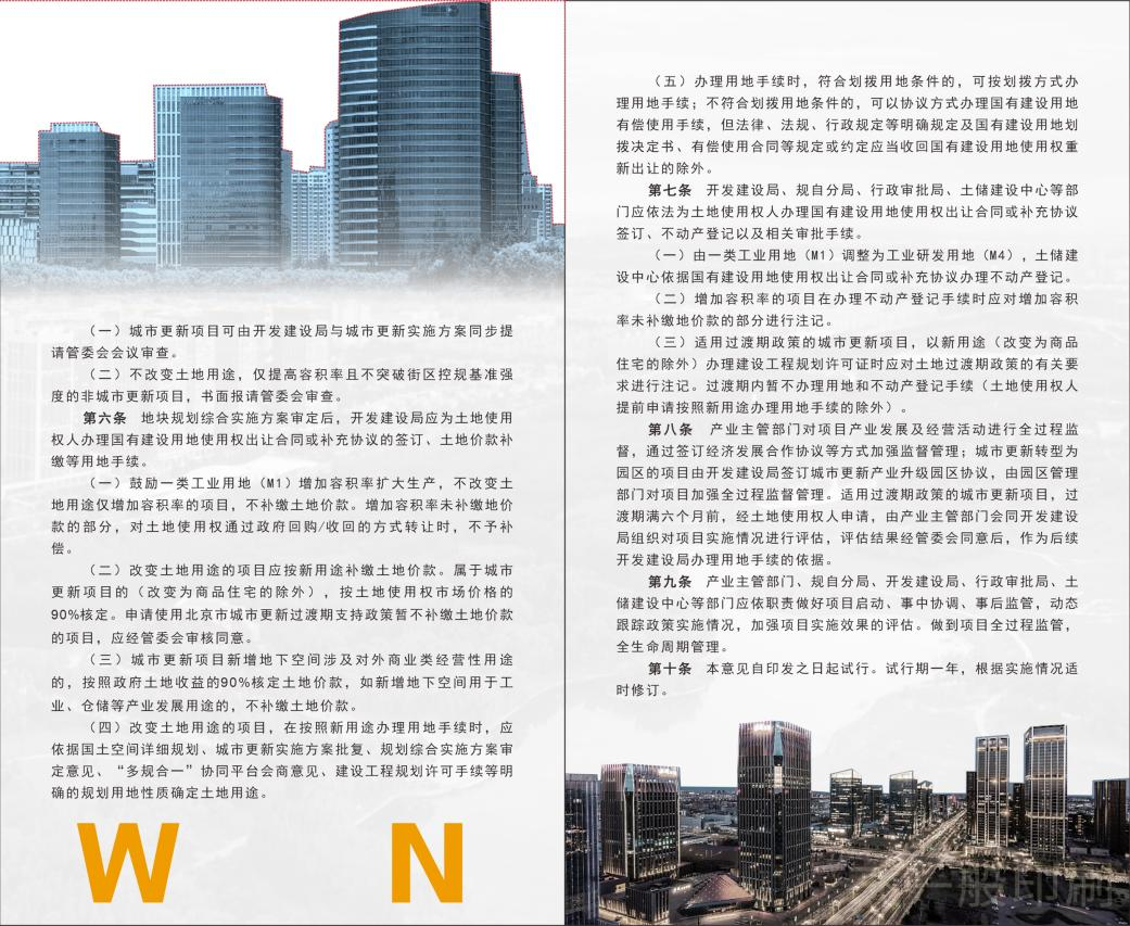 5.地价补缴差异化激励,降低企业转型成本。政策在充分衔接国家、北京市相关政策基础上,建立差异化地价补缴机制,用政策红利撬动企业提质增效积极性:城市更新项目土地用途变更按新用途标准补缴可享受9折优惠;仅提升容积率扩大生产或新增地下空间用于工业、仓储等产业功能的项目免予补缴土地价款。