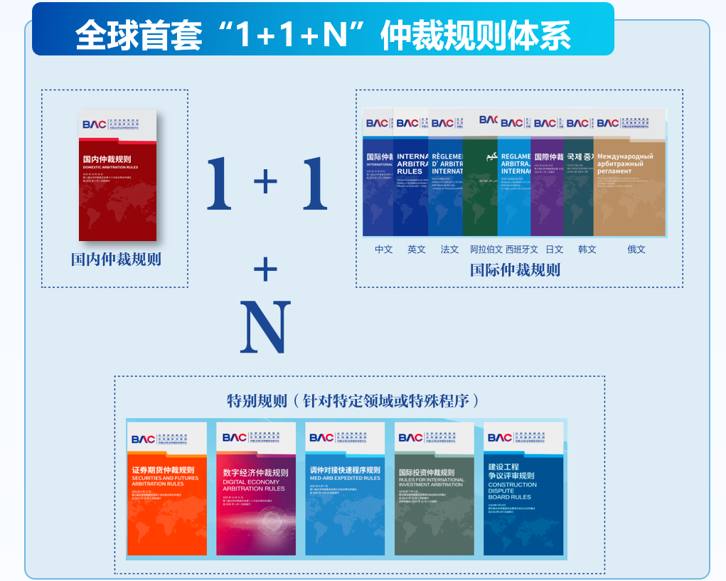 作为“1+1+N”体系的核心支柱,《国内仲裁规则》与《国际仲裁规则》双向赋能,分别聚焦本土需求与跨境场景,实现专业效能的精准释放。