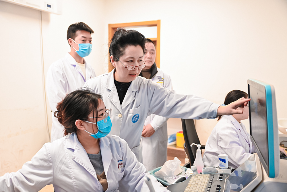 “要认真明确检查项目、受影响的部位以及影响程度,这样才能决定要不要通知病人再来复查。如果影响不大,就别折腾病人,尤其这个病人有下肢水肿,如果存在血栓,每一次活动都会增加风险。”在营山县人民医院超声医学科彩超室,四川大学华西医院专家林玲一边盯着彩超屏幕影像,指尖轻点屏幕标注关键部位,一边耐心讲解。她告诉我们,通过现场观摩和操作示范,能进一步帮助经验不足的年轻医生提升复杂病例和困难病人的鉴别诊断能力。