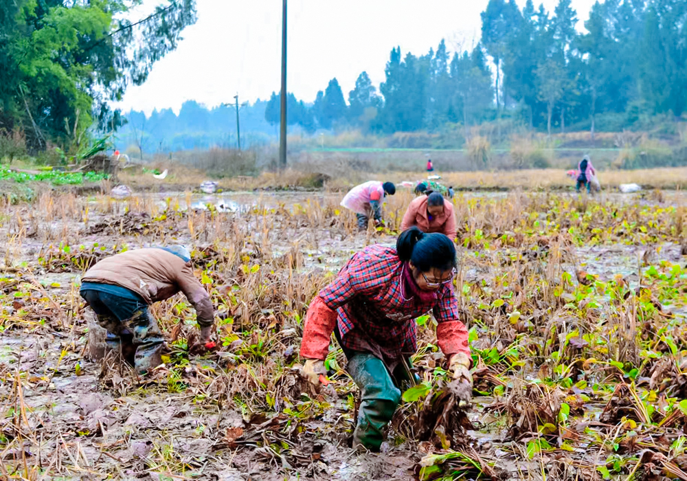 “这么冷的天儿,大家采收泽泻很辛苦,快来喝杯热水。”1月10日,在四川省南充市营山县小蓬社区的营山雨霖中草药种植专合社的泽泻种植基地里,专合社负责人陈国军一边关切地询问,一边给采收泽泻的居民们递上一杯热气腾腾的茶水。