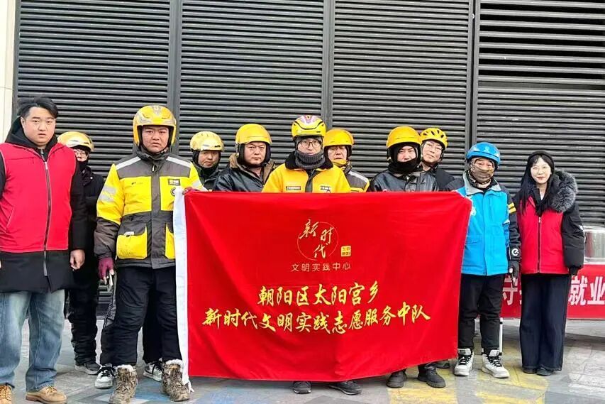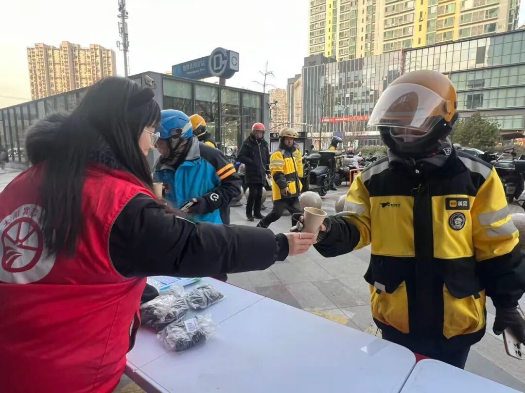 寒风凛冽,太阳宫地区温暖守护从不缺席。地区主动延伸服务触角,采用“暖‘新’关怀+凝‘新’志愿+聚‘新’共建”特色活动形式——以关爱促融入,以赋能强治理,通过“双向奔赴”推动小哥从“流动变量”转变为“治理增量”,在被温暖中扎根,在勤奉献中闪光,携手托举起冬日里“新”暖阳。