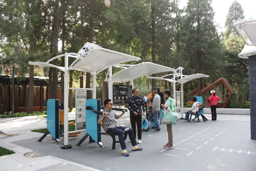 在日坛公园东侧的运动片区,原有的乒乓球场地、森林健身场地和多功能区也进行了改造,并加入了无氧运动区、拉伸运动区,新设瑜伽场地等,形成一个室外智能健身房。这一室外智能健身房配备了先进的智能设施,融合5G、物联网、大数据等前沿技术,能够为市民提供智能化的数据跟踪和反馈。在这套系统上,市民可以通过智能设备实时查看自己的运动数据,如心率、消耗的卡路里等,并根据系统反馈调整训练计划,实现更科学、更高效的健身效果。