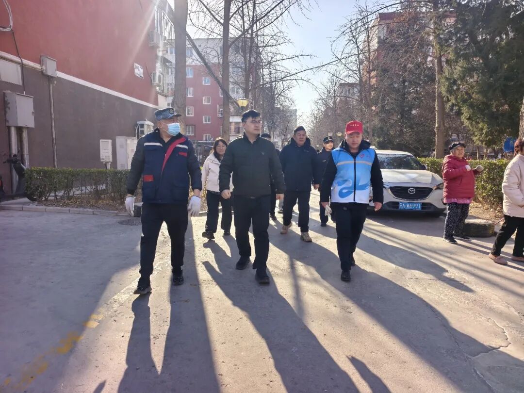 街道工委副书记车振天、纪工委书记马智鑫、武装部部长彭振宇分别带队,深入融泽家园一区东区、瑞旗家园二区、新康园、龙兴园等社区开展检查,重点排查楼道堆物堆料、小广告清理、车辆停放及公共设施维护等情况,现场听取意见建议,明确整改时间和具体要求。