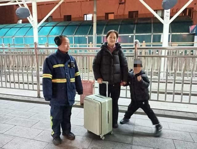 西站办指挥中心接报后迅速响应,调度站与派出所随即启动协同工作机制。仅15分钟后,一位母亲匆匆赶到——看到孩子,她瞬间红了眼眶,一把将孩子紧紧抱住。经民警与王强核实身份、完成交接记录后,孩子平安回到母亲身边。母亲连连向工作人员道谢,工作人员也递上站区服务热线卡片,并提醒“可以给孩子佩戴防走失信息牌,有需要随时联系我们”。