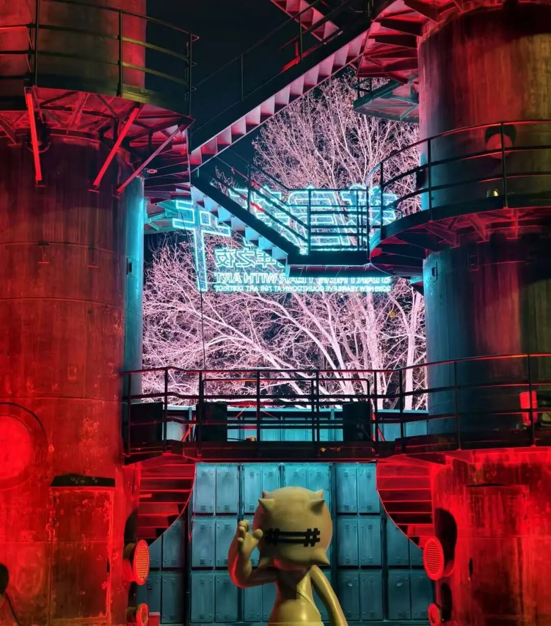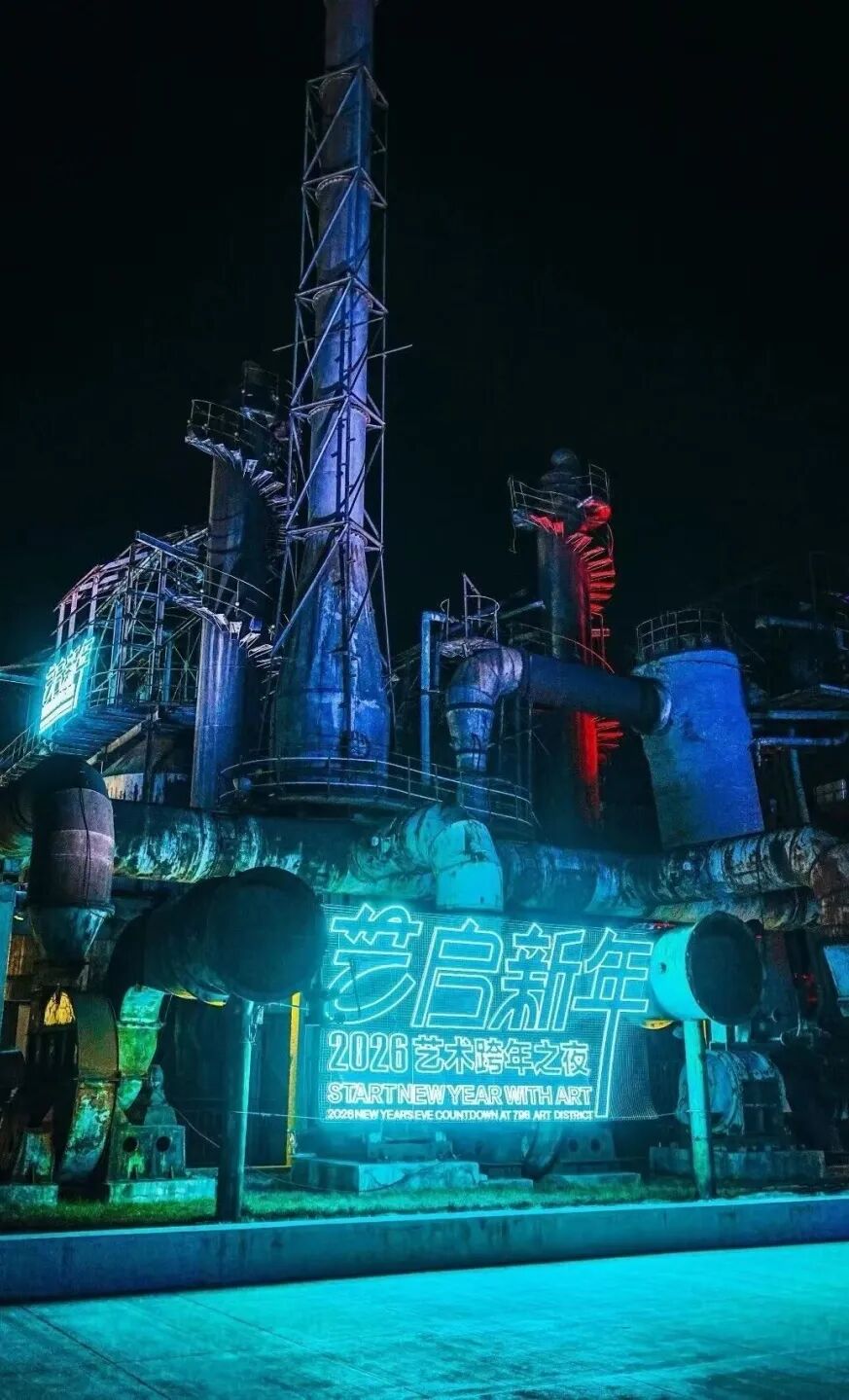 聚光的璀璨,在798艺术区的跨年夜尽数绽放,作为酒仙桥光影与艺术的核心聚集地,这里以“数字艺术+工业遗存”为内核,将科技与艺术的融合藏进每一处光影布局,全区多点联动的光影设计,让钢铁的硬朗肌理与数字光影的灵动流转相映成趣,工业质感在光效烘托下更显厚重,不同区域的艺术化光影彼此呼应,让整个园区成为光的磁场吸引着人们向此处汇聚。