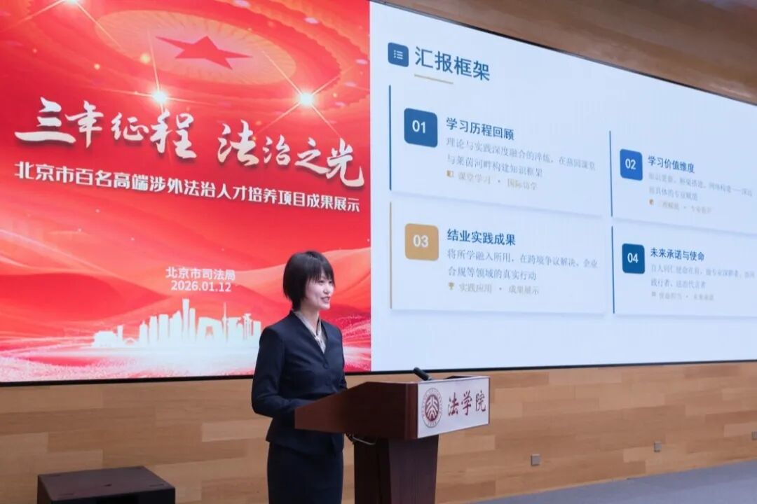北京市百名高端涉外法治人才培养项目为期三年,旨在加快培养百名精通国际规则、具备全球视野的高端涉外法治人才。项目通过引入国内外知名专家教学,组织学员赴粤港澳大湾区和东南亚、中欧、中亚地区访学,促进思维拓展与实务交流,有效提升人才全球视野与实战能力,探索形成可复制、可推广的涉外法治人才培养“北京模式”。