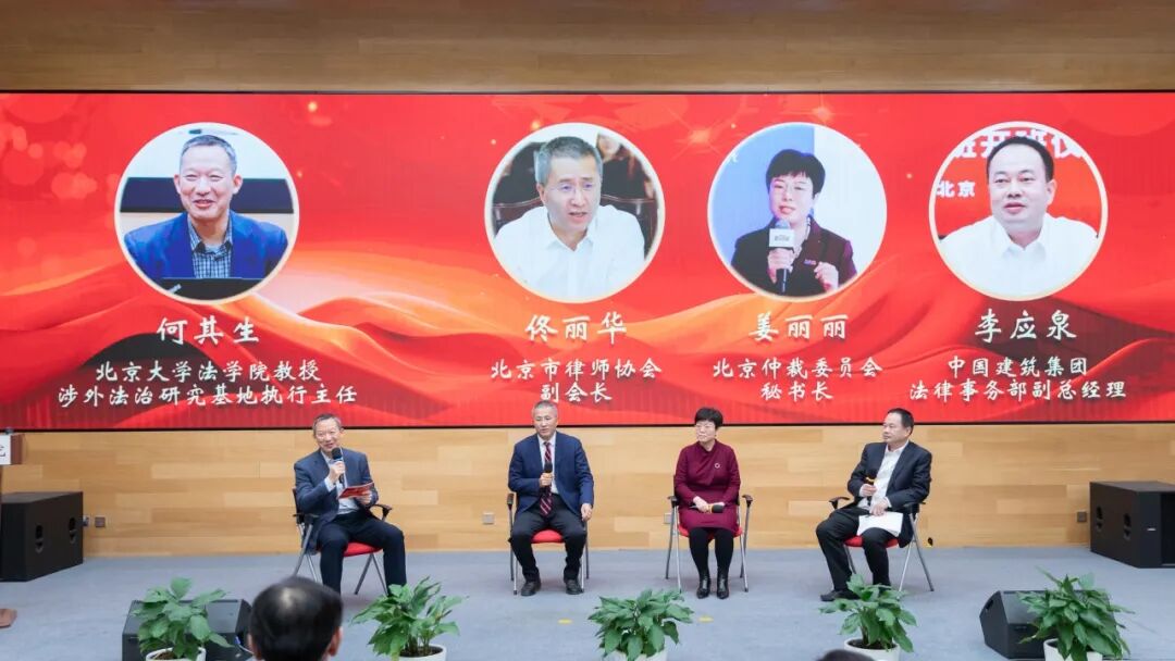 活动还设置了嘉宾对话环节,北京大学法学院何其生教授与市律协佟丽华副会长、北仲姜丽丽秘书长、中建集团法务部李应泉副总经理等实务专家的与谈,诠释了涉外法律服务与出海企业供需对接、相向而行的项目初衷。