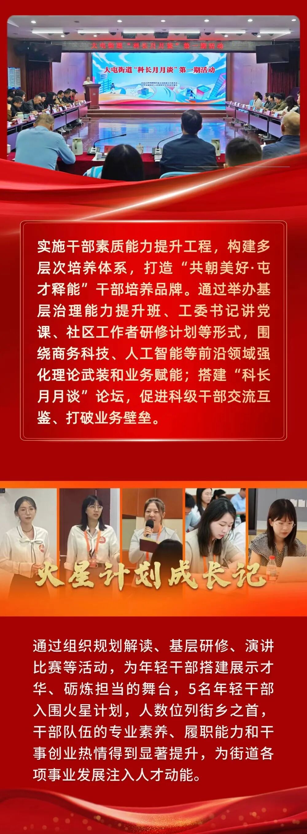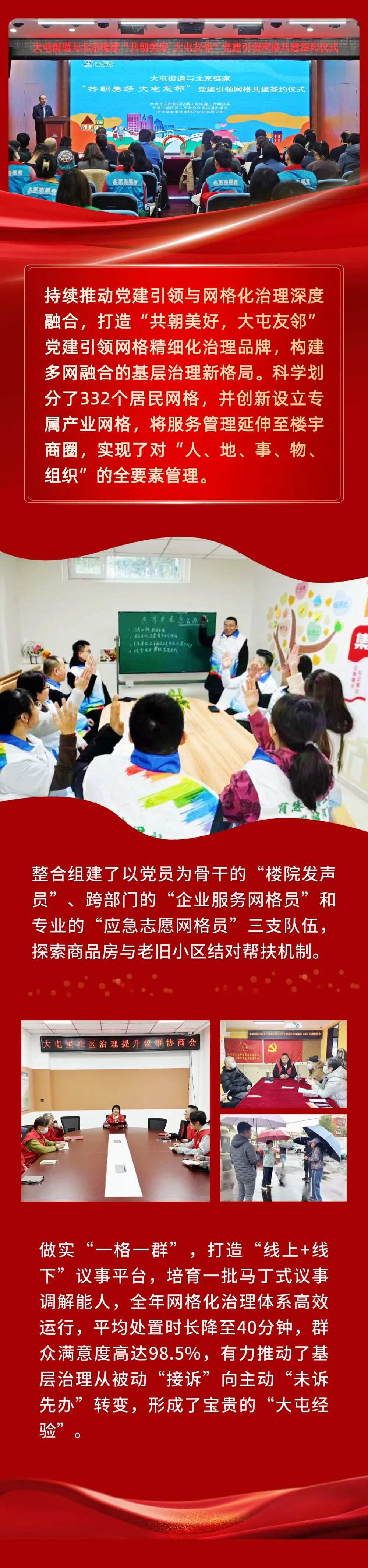 2026年是“十五五”开局之年,大屯街道将持续深耕“共朝美好”系列品牌,实施党建规范化建设、基层组织强化、网格融合精治、新兴领域党建提质增效、党建引领商圈赋能、干部培养屯才释能等六大工程,以系统化布局、机制化推进、数字化赋能为路径,把党建引领的组织优势转化为高质量发展、高效能治理、高品质生活的生动实践,为提升“五区”功能、建设 “五宜”朝阳贡献坚实的大屯力量。