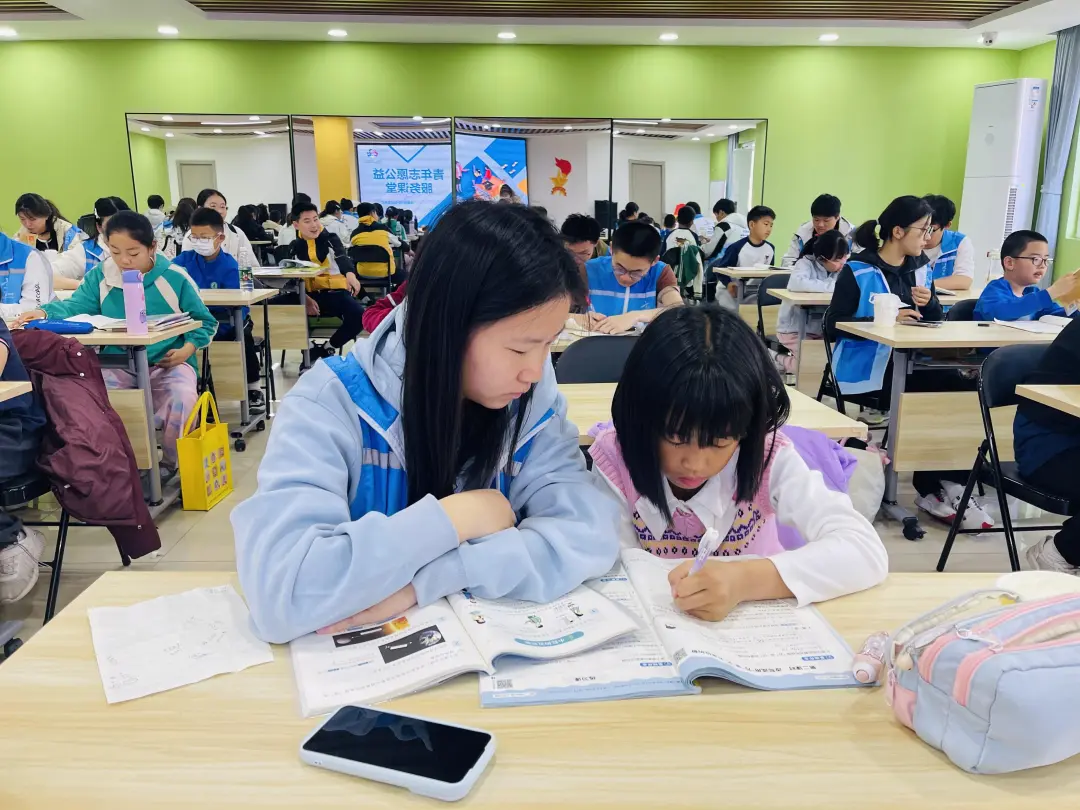 为加强未成年人思想道德建设,让社会主义核心价值观浸润童心,2025年,石景山团区委依托京原路7号·社区青年汇、八角街道杨北公益星·社区青年汇,联合北方工业大学,面向全区开展50余场“青少年公益课堂”,服务时长累计约1700小时,为1100余名社区青少年提供了专业、贴心的学业支持与成长陪伴。