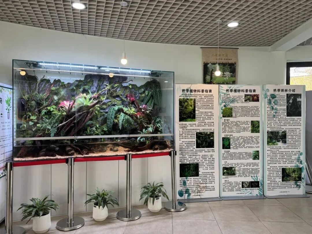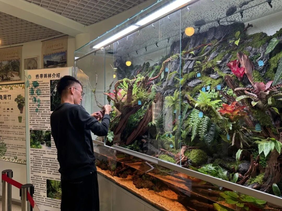 据了解,该科普角搭建过程中,团队以模拟热带植物自然生长群落为核心,精选十余种典型热带植物,涵盖附生、陆生、藤本等多种生长类型,通过调控光照、湿度,搭配枯木、岩石等造景,最大程度还原了热带生态的核心特征,让每一株绿植都成了科普宣传的“活教材”。
