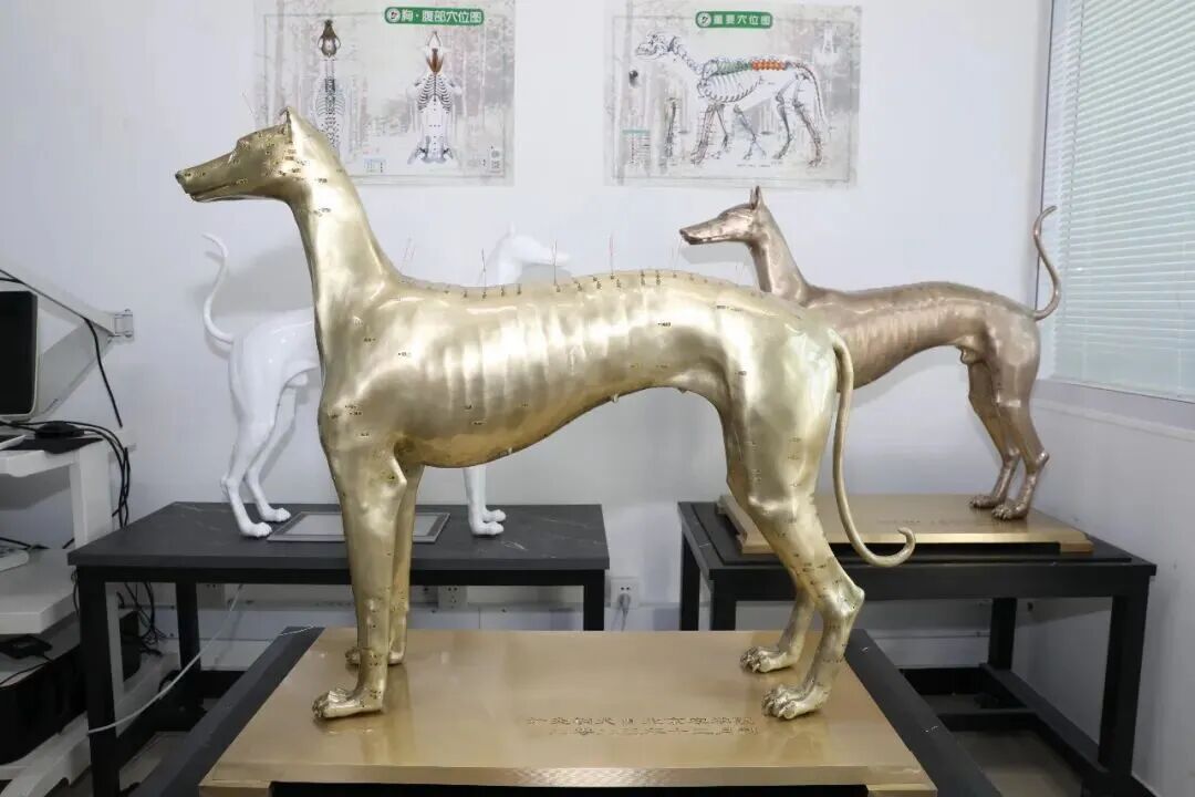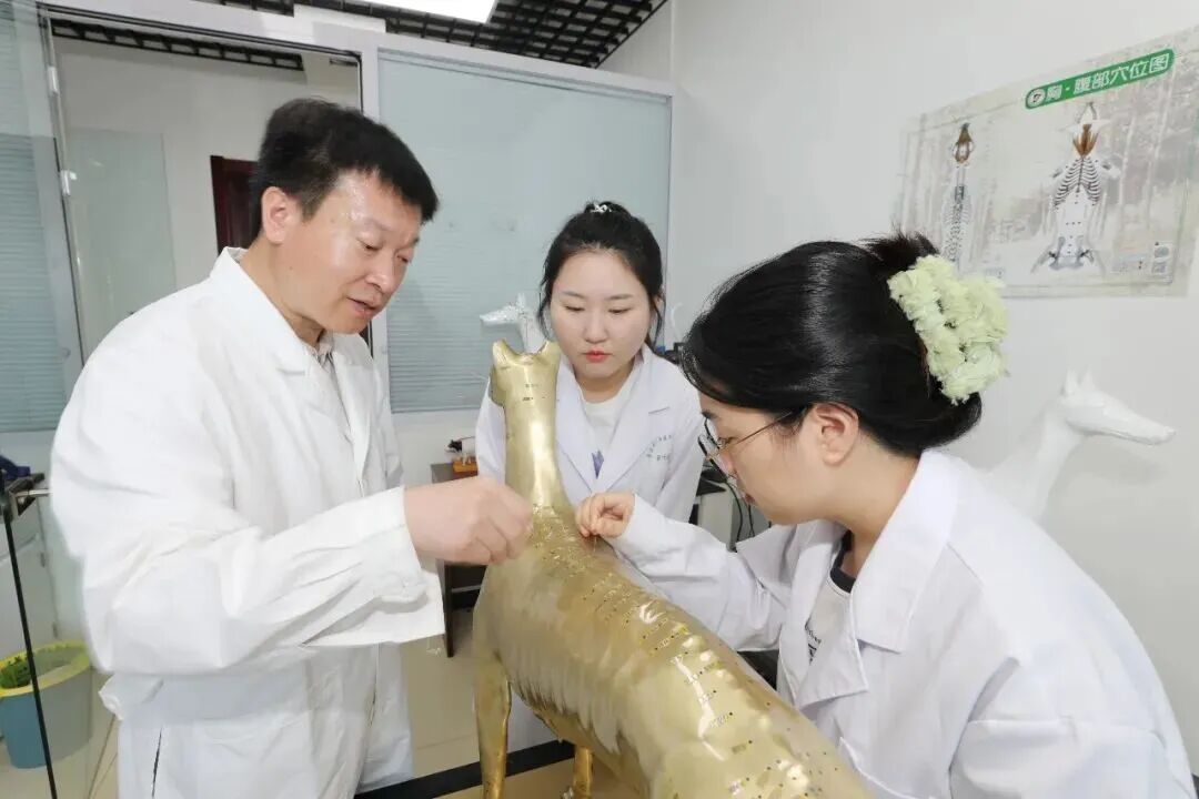 北京农学院动物医学专业学生率先在中兽医实操课用上了针灸铜犬、智能针灸犬等新教具。