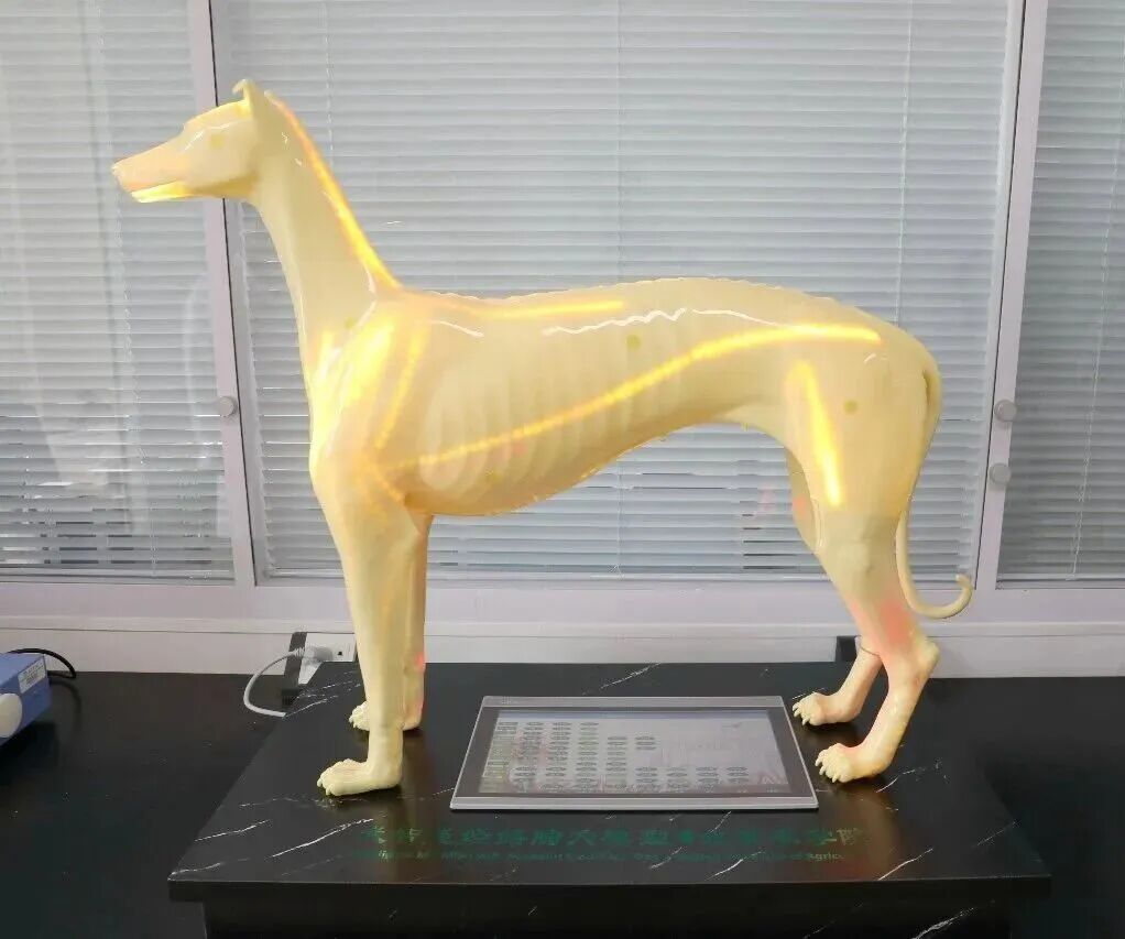 针灸犬的外形也在不断进化,最终选择了中国细犬的造型,酷似古代神话里的哮天犬形象,体型偏瘦,肋骨突出。姜代勋解释,这是为了帮助学生更好地定位,“骨头就像坐标,比如小狗的足三里穴就在胫骨粗隆外下方,距胫骨嵴1寸处。摸到胫骨就能找到穴位。”