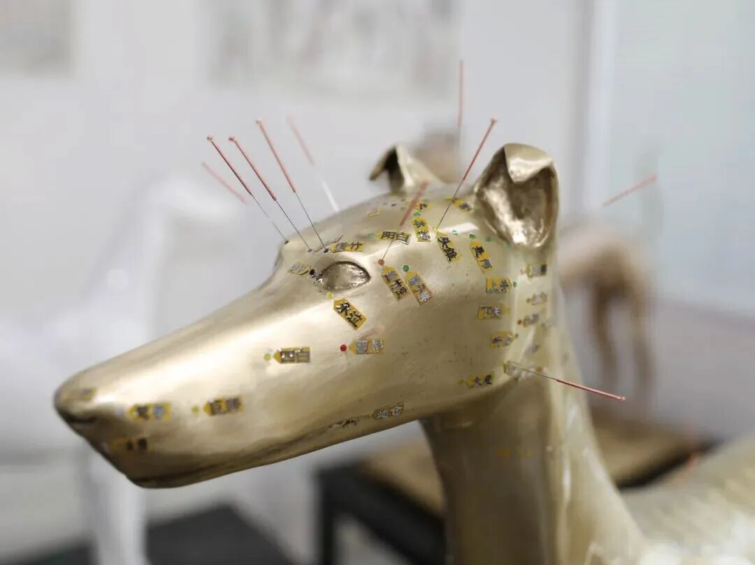 “智能针灸犬之前,我们做出过两款雏形,体表都有带‘标注’的穴位,方便使用者更快速准确地定位,揣摩提、插、捻、转等针刺手法。”姜代勋说,现在的针灸犬体表有近100个腧穴。“就是经络气血汇聚、转输及出入的 ‘特殊功能部位’,一般治疗施针的位置。”