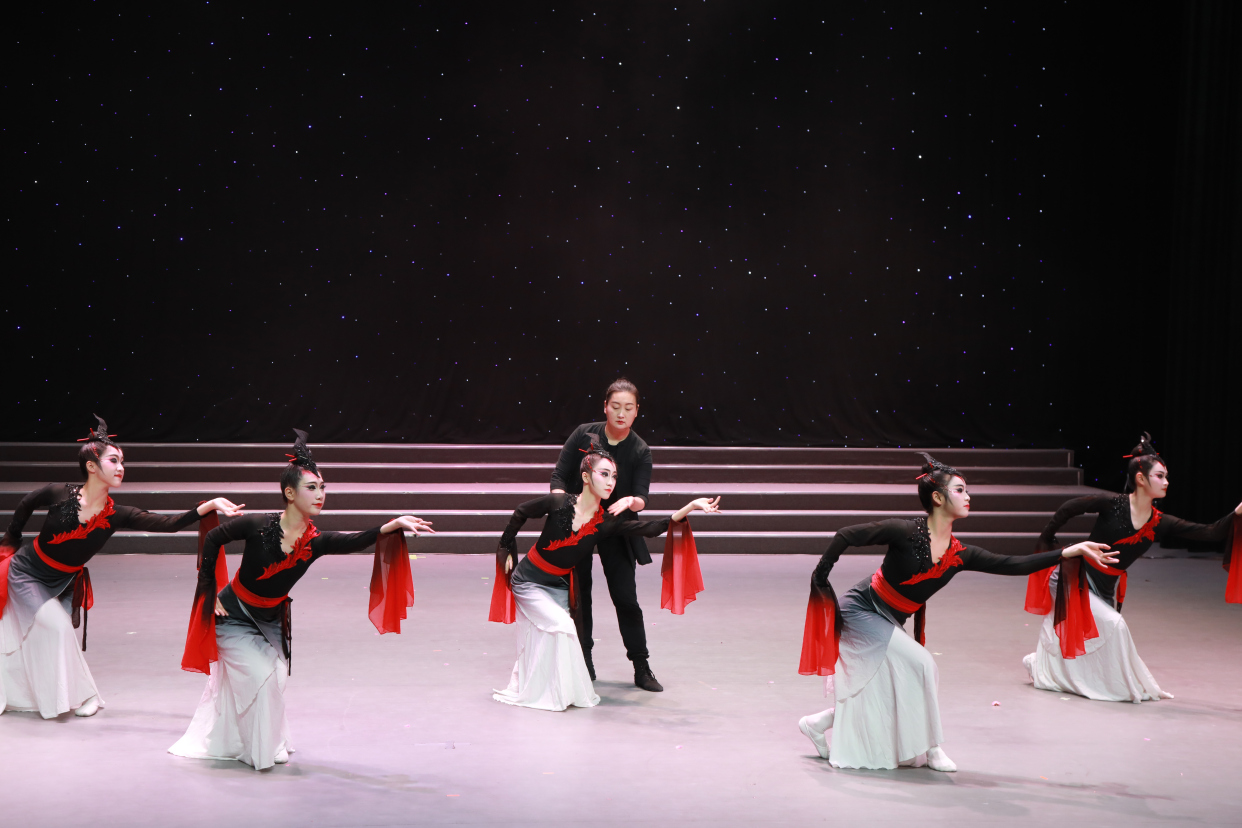演出分为“容启·星梦”“融汇·星光”“荣创·星舞”三大篇章。舞蹈《墨梅》典雅诠释传统韵味,《鱼乐》灵动展现童趣场景。尤为突出的是两部深度融合地域文化的原创作品:音乐剧《英歌向未来》以少年视角探讨非遗英歌舞的现代传承,鼓点激昂;舞蹈《丝路幻游记》则引领观众开启一段跨越时空的敦煌文化之旅。这些精彩节目的呈现,离不开舞蹈团自主研发的“星·舞”课程体系的支撑。彭少华介绍,该课程包含风格元素、身体素质、表演创造、拓展实践、舞蹈基本素养五大模块,致力于分层培养学员的舞蹈素养。本次演出正是该课程的一次集中亮相与成果汇报,通过“讲解-演示-表演”的完整链条,清晰呈现不同梯队学员的训练重点与成长轨迹。
