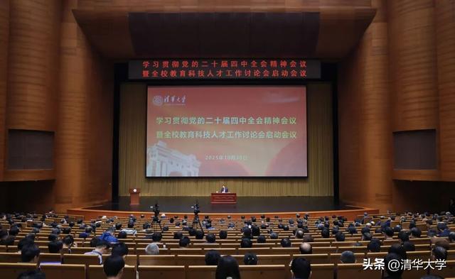 2025年10月20日至23日,中国共产党第二十届中央委员会第四次全体会议举行,审议通过了《中共中央关于制定国民经济和社会发展第十五个五年规划的建议》。清华大学先后举行党委常委会会议、党委理论学习中心组集体学习、全校党员集中培训、全校干部党的二十届四中全会精神学习班等,传达学习党的二十届四中全会精神。10月30日,清华大学学习贯彻党的二十届四中全会精神会议暨全校教育科技人才工作讨论会启动会议举行。为更好贯彻落实中央精神,清华大学将原来的教育工作讨论会、科研工作讨论会、人才工作会合并为教育科技人才工作讨论会,每两年召开一次。此次教育科技人才工作讨论会围绕“加快中国特色大学创新体系建设,统筹推进教育科技人才体制机制改革”主题形成了4个专题报告和82份意见建议报告,提出一批教育科技人才一体发展的务实举措,切实把全会精神转化为全面推动中国特色世界一流大学高质量发展的实际成效。