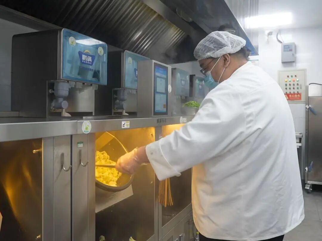 “这套智能烹饪设备全面覆盖炒、煎、蒸、煮、炸等环节,目前已经录入200道菜品配方,实现一道菜品对应一套标准化程序,确保每道菜品口感稳定、安全可控。”平谷中学校长助理李瑞丰介绍,机器人的引入避免了人工烹饪时可能出现的“今日咸、明日淡”的情况,还能提升出餐效率、节约人工成本,让工作人员有更多精力投入到食材准备和服务优化上,“同时,自动化的流程减少了人工接触食材的环节,从源头上降低了污染风险,保障食品安全。”