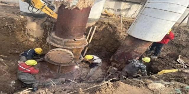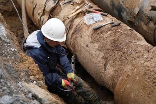 去年12月,黄十一渤五路东升小区门口DN600高温水管突发泄漏。该管线承载郭集、邮政两大片区供热负荷,情况十分紧急。抢修队赶赴现场后发现地下管线错综复杂,于是迅速与相关权属单位联动确认,同时,现场制定带压封堵方案。随后,在热水涌出、空间受限的作业环境下,连续奋战至次日凌晨,完成泄漏修复,系统恢复运行。