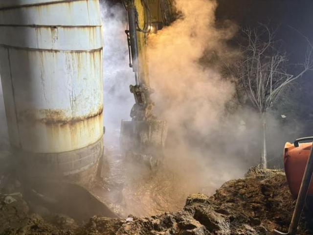 1月7日傍晚,黄五渤二十二路 DN700 供水主管线突发泄漏,系统压力骤降。抢修队火速集结,抵达现场后迅速隔离危险区域,调度机械开挖引流基坑,三台大功率抽水设备同时运转,争分夺秒降低作业面水位。在严寒与水汽中,抢修人员身着厚重防烫服,精准定位锈蚀裂口,历时五小时完成带压焊接,保障了沿线多个小区正常供热。