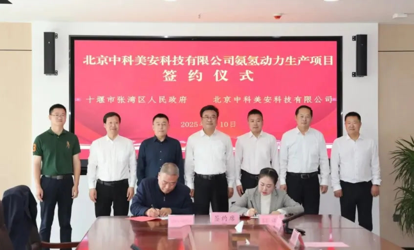2025年4月10日,张湾区人民政府与北京中科美安科技有 限公司签约氨氢动力生产项目,总投资10亿元。氨氢动力生产项目是十堰市张湾区深化与北京市丰台区对口协作开展招商引资工作的重大成果,该项目选址十堰工业新区,通过氨氢融合技术突破氢能产业储运壁垒助力产业转型升级。项目分三期建设,全部投产后,预计年产值达20亿元以上,年税收1.5亿元以上。