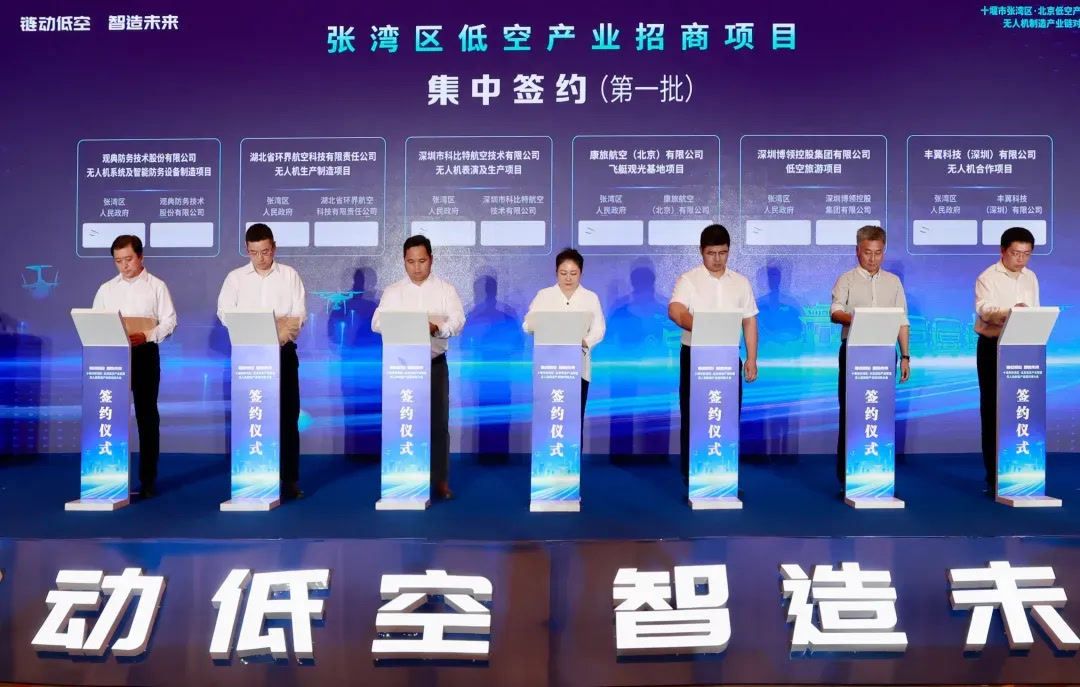 2025年6月26日,十堰市张湾区·北京低空产业联盟无人机制造产业链对接大会在张湾区举行,会上签约11个项目,协议总投资33.5亿元,内容涉及飞行器生产制造、低空旅游观光、飞行基础设施建设、低空综合服务、智能环境监测等领域。