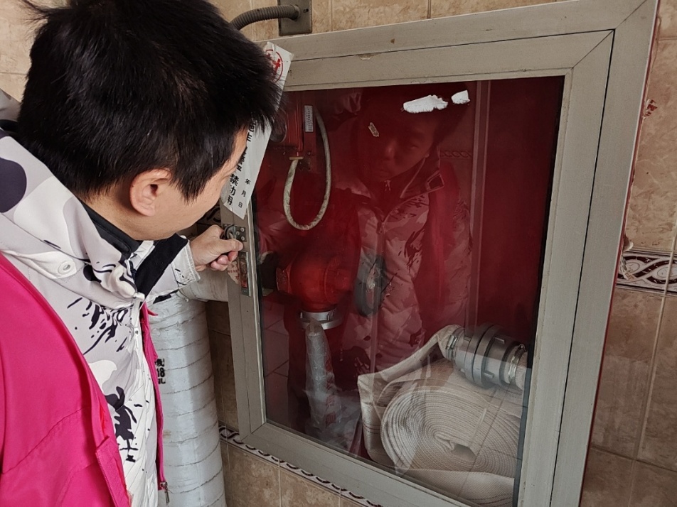 消防专干仔细取出内置消防水带,对水带是否存在破损、老化、霉变等问题进行全方位细致查验;同时,重点核查水带与消防栓接合器的连接状态,确保接口处紧固牢靠、无锈蚀渗漏,全力保障紧急时刻能够快速接驳、顺畅出水,切实让消防设施“拉得出、用得上”。