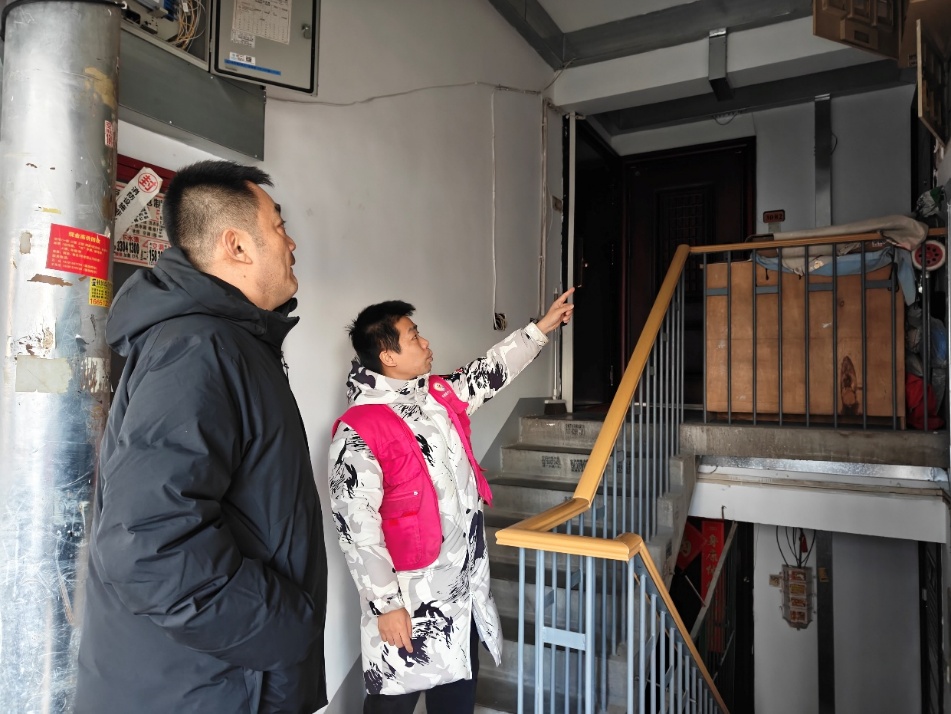 为持续强化社区消防安全基础,织密居民楼宇安全防护网,切实保障辖区居民生命财产安全,日前,太阳宫地区芍药居六社区消防专干张寅、社区服务站站长任立群带队,组织对辖区内各居民楼栋开展全方位消防安全专项巡查整治行动,重点排查消防设施设备完好情况与楼内堆物等火灾隐患。此次专项行动聚焦居民楼宇消防安全关键环节,形成“设施核查+隐患排查”双发力的巡查模式。