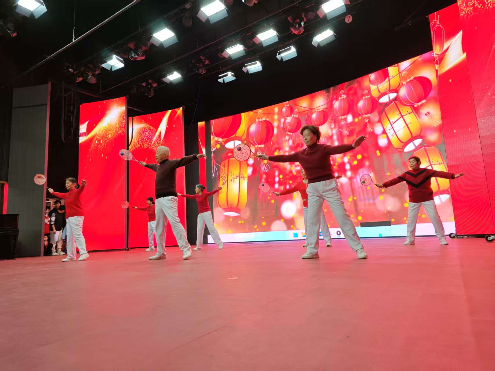 舞蹈《新春乐》拉开活动序幕,以灵动舞姿和明媚笑容点燃全场。随后,京剧、小合唱、太极扇、柔力球、大合唱等接连上演。由社工自编自导自演的三句半《社区大小事》,讲述了一年来社区变化与居民生活提升,赢得了现场居民好评。