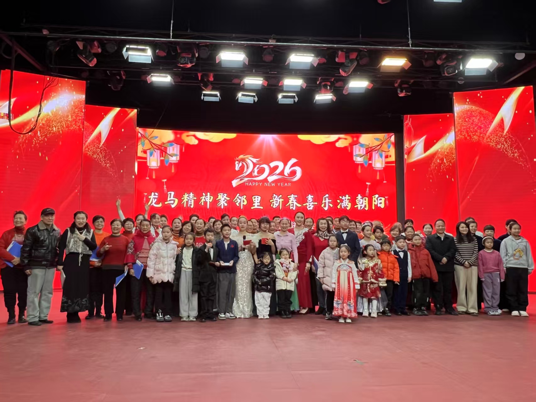 灵蛇辞岁留祥瑞,骏马迎春启新程。朝阳平房地区青年路社区“龙马精神聚邻里·新春喜乐满朝阳”新春联欢会在北京中学润丰分校大礼堂隆重举办。平房地区社区建设办公室副主任石茜、北京中学润丰分校校长范小江、润丰物业公司负责人孙乐乐及社区党委书记陈丽芳等嘉宾应邀出席,与200余名社区居民欢聚一堂,共贺新春佳节。