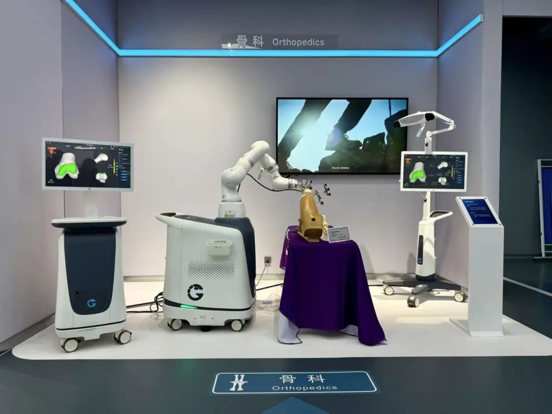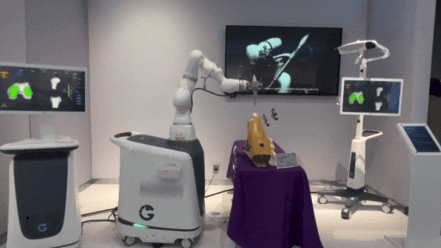 ▲长木谷AI骨科智能手术机器人模拟手术演示。