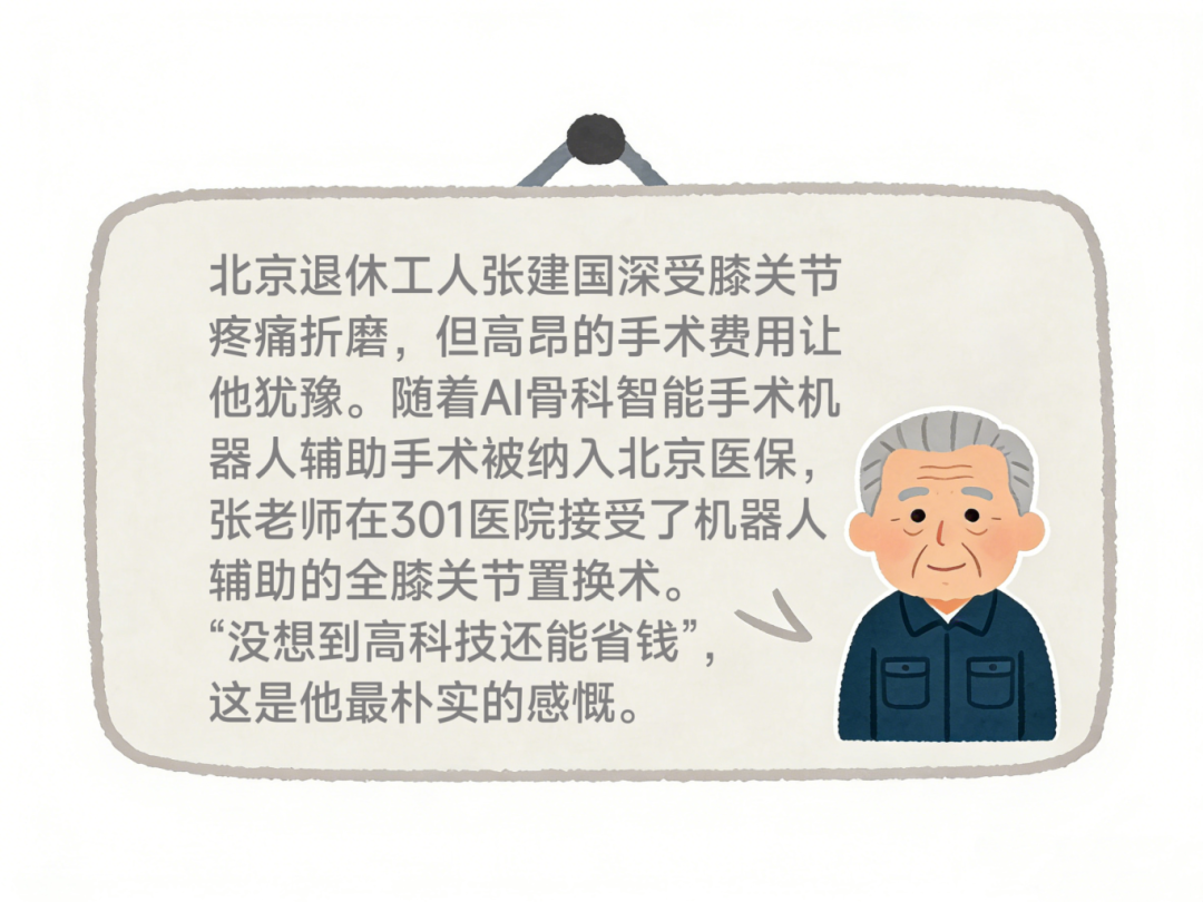 相关机器人辅助关节置换手术项目已纳入北京市医保支付范围,手术费用从传统的十万元左右降至两三万元。