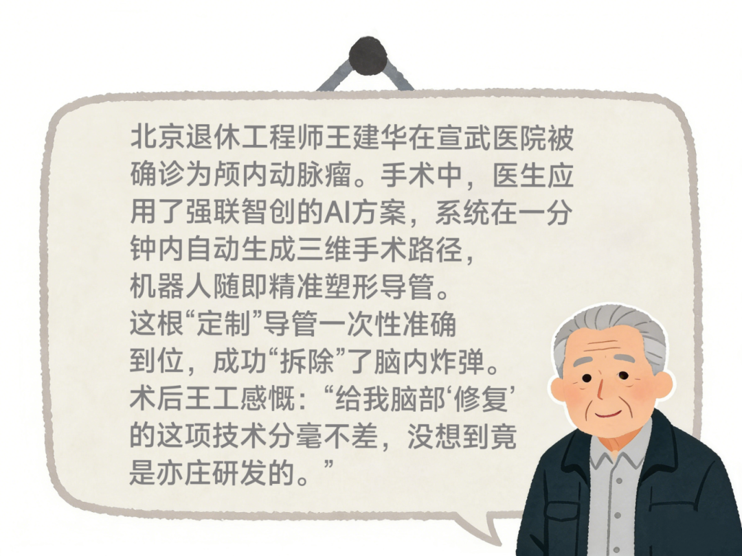 强联智创全球首创的AI导管塑形机器人重塑了手术流程,能在1分钟内自动为手术绘制出精确到微米级的“导航地图”,AI导管塑形机器人会像一位拥有“微米级手指”的工匠,根据方案将导管自动塑造成与患者血管路径完美契合的形状。